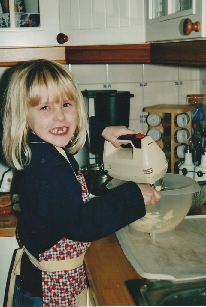 Als kind vond ik bakken al heel erg leuk. De gezelligheid, stiekem een beetje van het beslag proeven en de geur van versgebakken koekjes. Nu brengt bakken mij nog steeds terug naar deze fijne jeugdherinneringen.